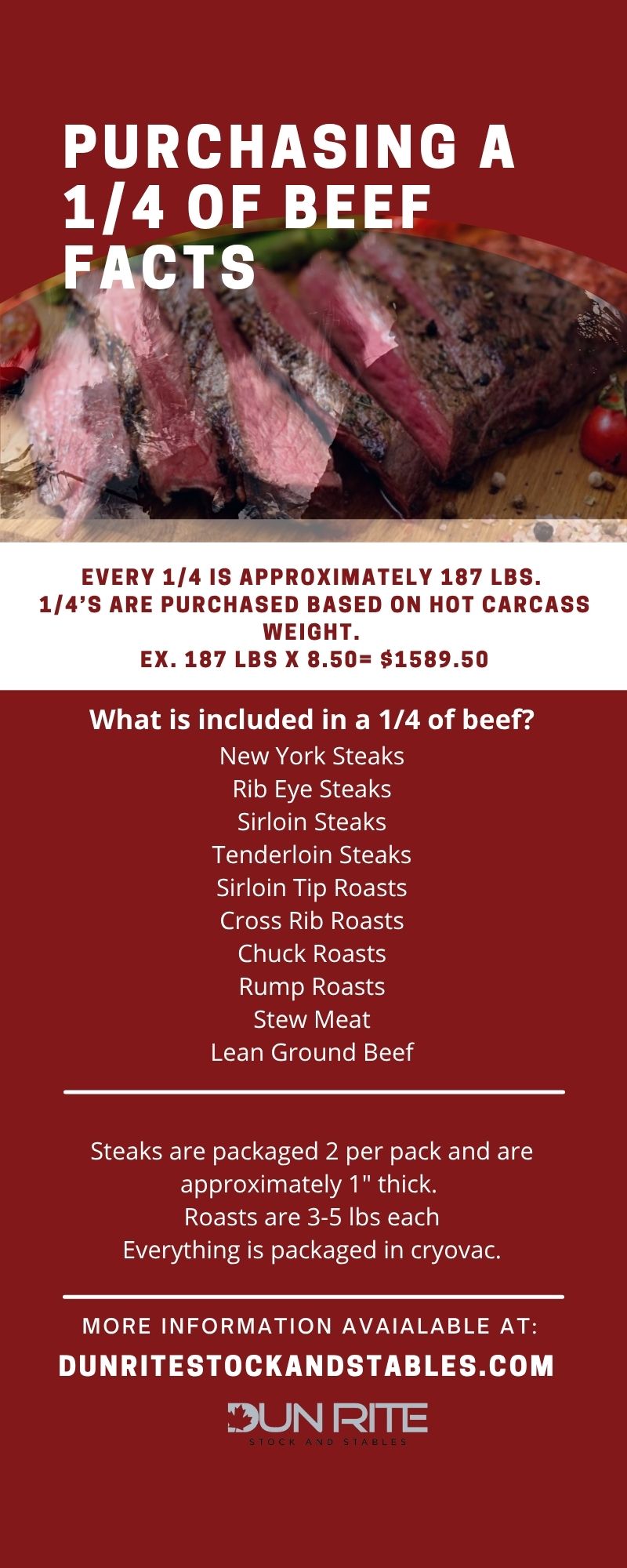$300.00 deposit required to order a Whole Beef.